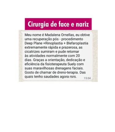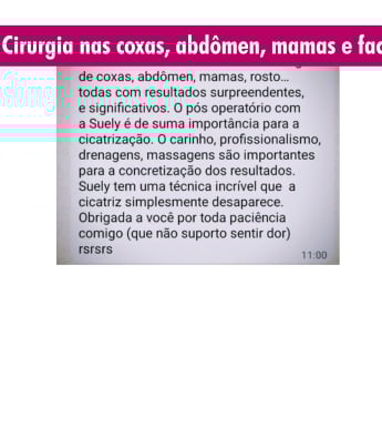 Tenho mais de 5.000 pacientes atendidos no pós- operatório das cirurgias Plásticas Estética e Reparadora, onde cuidei e orientei esses pacientes a tratarem de suas cicatrizes e deixá-las imperceptíveis.